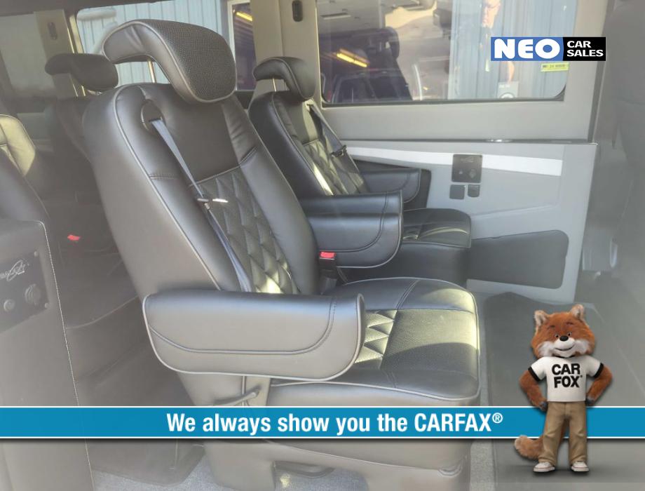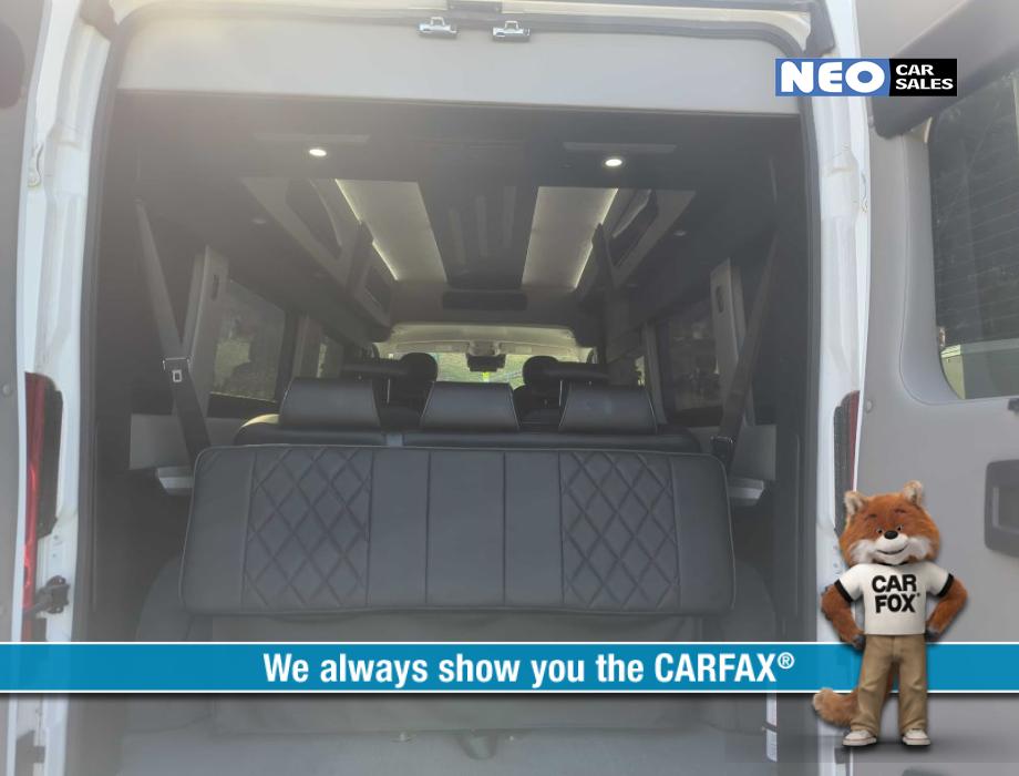 9 Passenger Seating Doors: Cab Doors (1 per side), Mid Doors (Passenger side), Rear Doors (2) Front Seating: Captains Chairs, Power Seating, Premium Leather Mid Seating: Captains Chairs, Premium Leather Rear Seating: Power-Sliding Rear Sofa/Bed Features: AM/FM/SiriusXM Stereo, Back-up Camera, Steering Wheel Controls, Premium Speakers, Cruise, Wireless Charging Pad