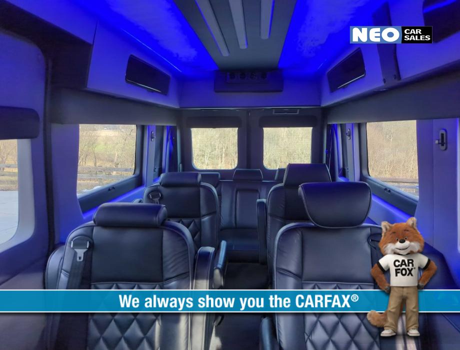 9 Passenger Seating Doors: Cab Doors (1 per side), Mid Doors (Passenger side), Rear Doors (2) Front Seating: Captains Chairs, Power Seating, Premium Leather Mid Seating: Captains Chairs, Premium Leather Rear Seating: Power-Sliding Rear Sofa/Bed Features: AM/FM/SiriusXM Stereo, Back-up Camera, Steering Wheel Controls, Premium Speakers, Cruise, Wireless Charging Pad